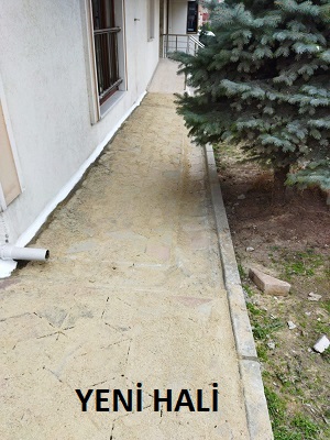 Apartmanımızı çevreleyen kilit taşlarda yıllar boyunca süren toprak oturmaları sonucunda oluşan deformasyonları giderdik